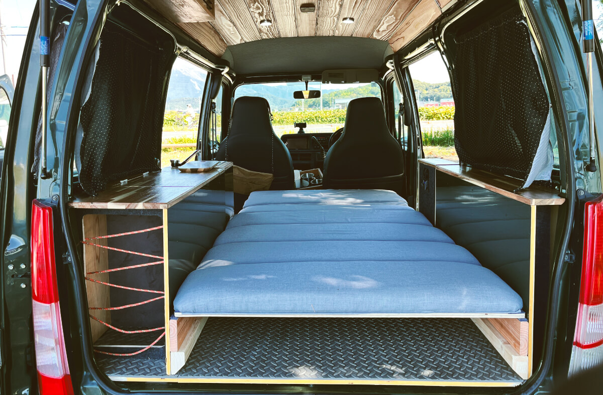 小回りの効く軽バンをベースにソファや収納機能をフル装備。